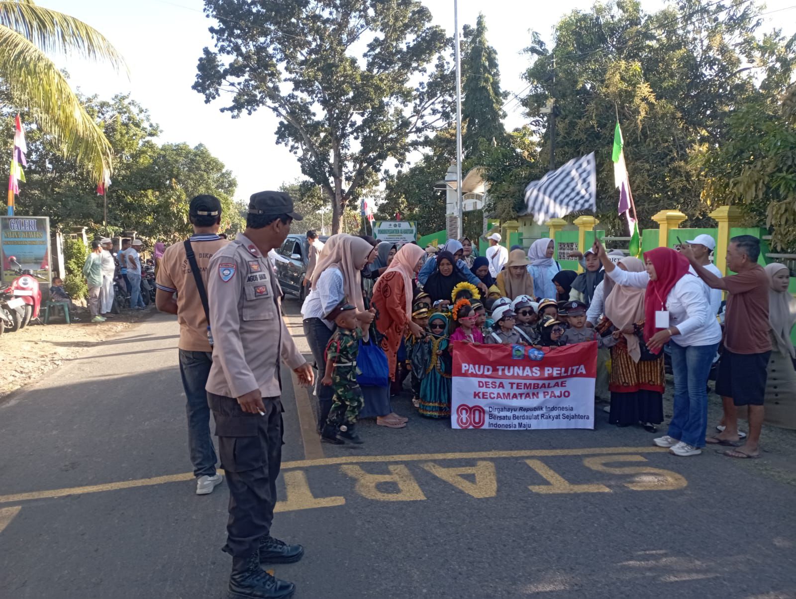 Dari titik start di depan Pondok Pesantren Al-Kautsar, regu-regu peserta melangkah melewati Desa Ranggo dan Desa Temba Lae, hingga garis finish di depan SDN 6. Sepanjang rute, polisi mengatur lalu lintas agar arus kendaraan tidak mengganggu jalannya lomba. Bahkan di persimpangan kecil, satu atau dua personel ditempatkan untuk memastikan penonton dan pengguna jalan tetap tertib.