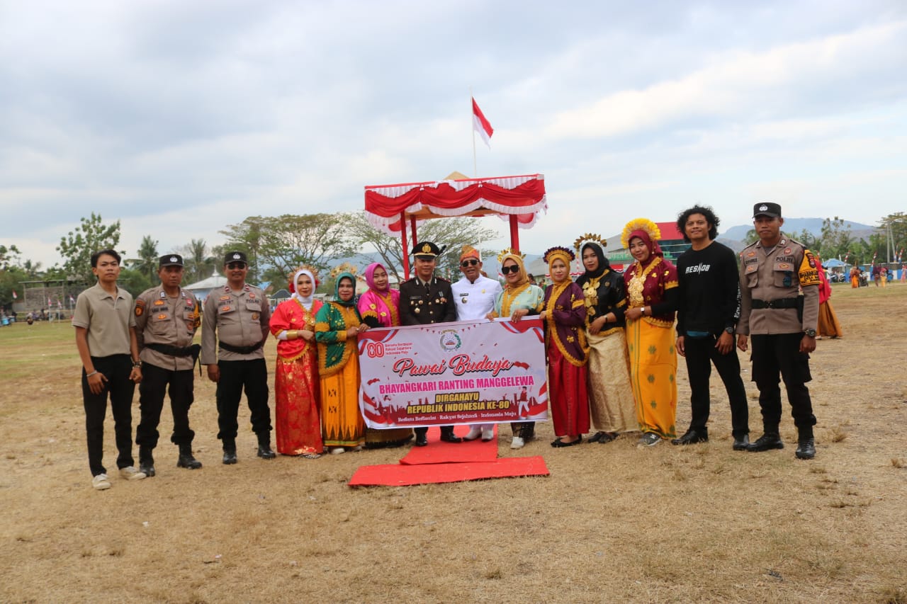 Semarak Hari Ulang Tahun Republik Indonesia ke-80 di Kecamatan Manggelewa terasa semakin istimewa dengan hadirnya Pengurus Bhayangkari Ranting Manggelewa. Dalam kegiatan Pawai Budaya dan Upacara Penurunan Bendera, Minggu (17/8/2025), Bhayangkari tampil anggun dan penuh semangat, menjadi barisan yang memberi warna tersendiri bagi peringatan hari bersejarah bangsa.