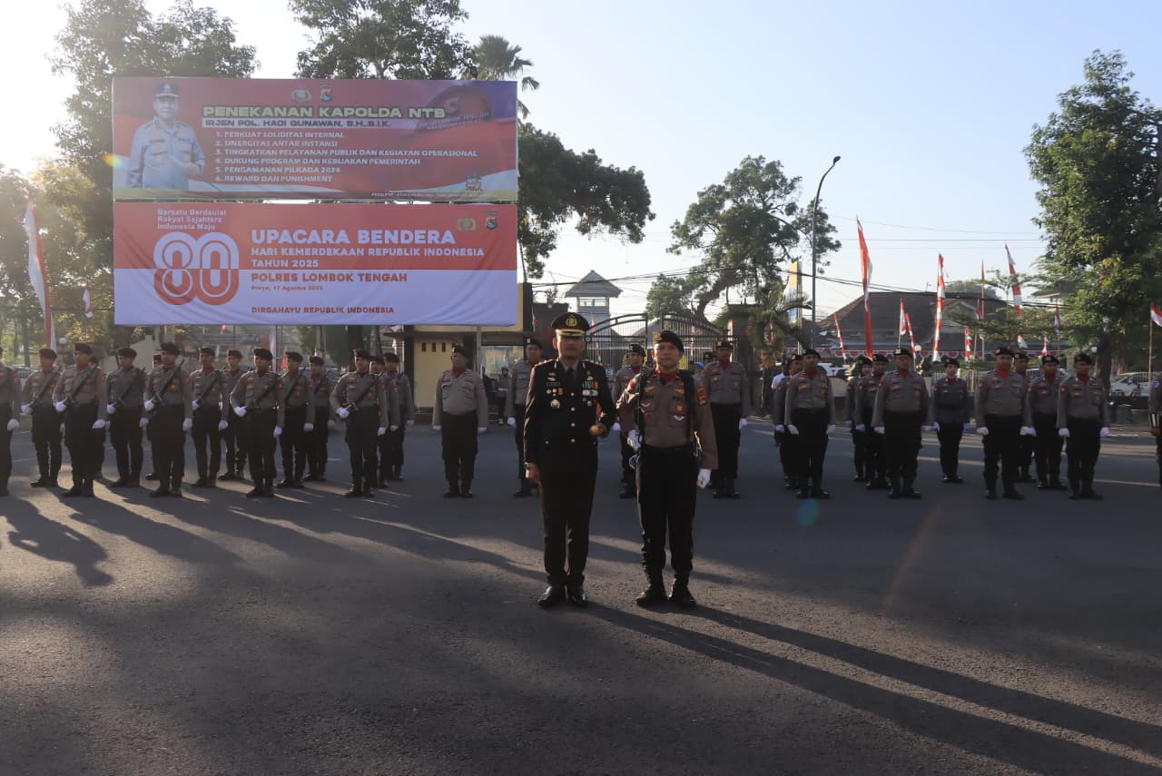 ‎Lombok Tengah, (NTB) – Kepolisian Resor Lombok Tengah menggelar upacara peringatan Hari Ulang Tahun (HUT) Republik Indonesia Ke-80, Minggu (17/8).