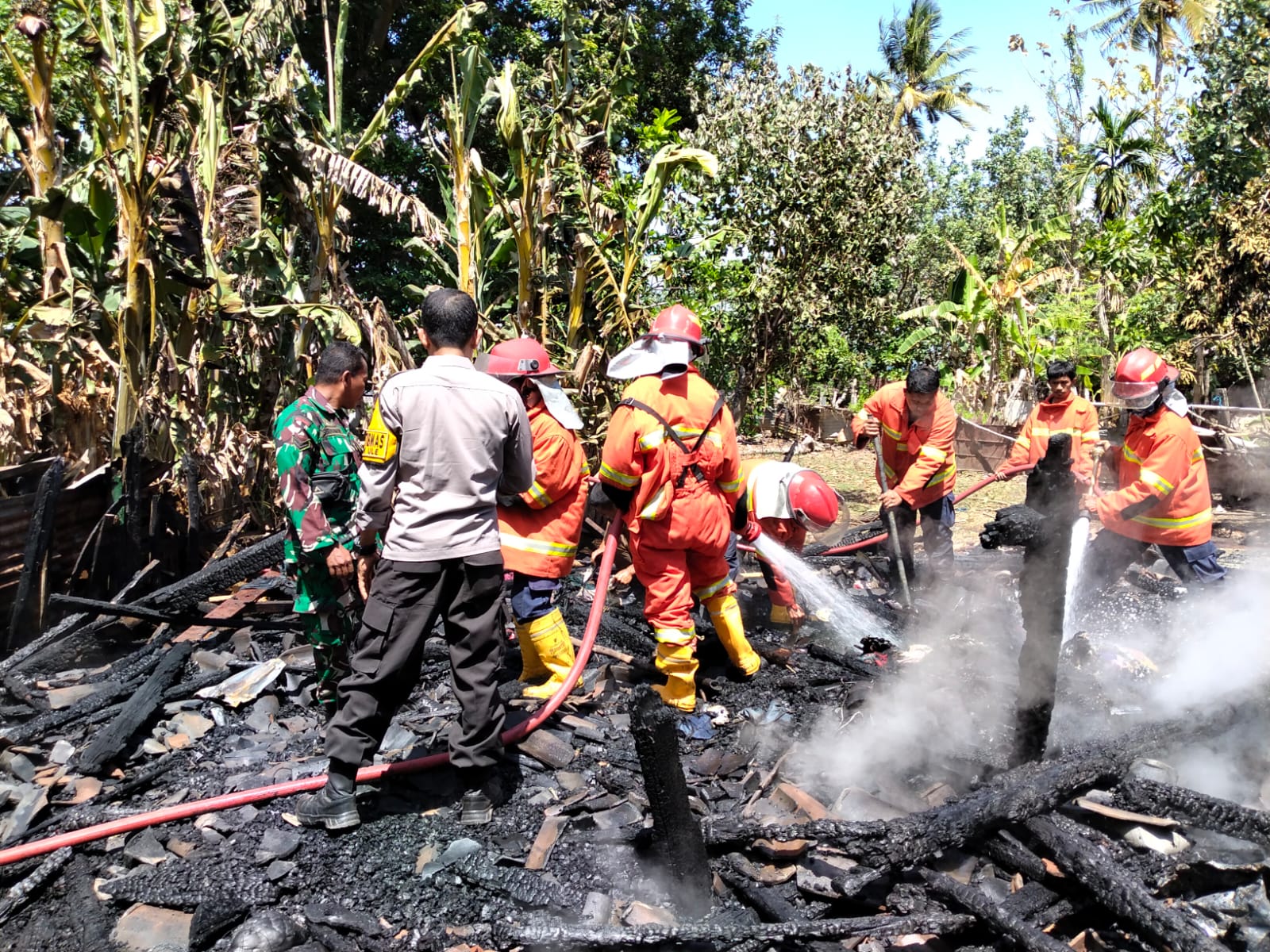 Beruntung, warga bersama personel Polsek Asakota segera bergotong-royong memadamkan api dengan peralatan seadanya, sehingga kebakaran tidak meluas ke rumah lain.