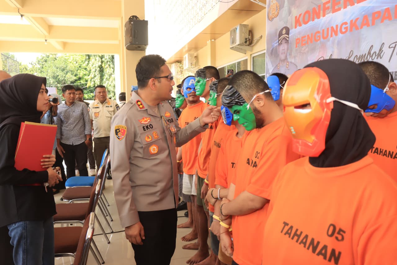 Lombok Tengah, (NTB) – Polres Lombok Tengah melakukan sebuah langkah unik dan bermakna, para tersangka aksi kriminalitas dihadirkan di hadapan publik dengan mengenakan topeng pahlawan super saat konferensi pers, Rabu (3/9).