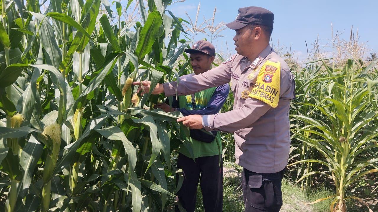 Selasa, 16 September 2025, Bhabinkamtibmas Desa Ta’a, Polsek Kempo BRIPKA Ibrahim, melaksanakan kegiatan pemantauan terhadap lahan pertanian jagung milik warga binaan sebagai bentuk dukungan terhadap Program Ketahanan Pangan Nasional menuju Indonesia Emas 2045.
