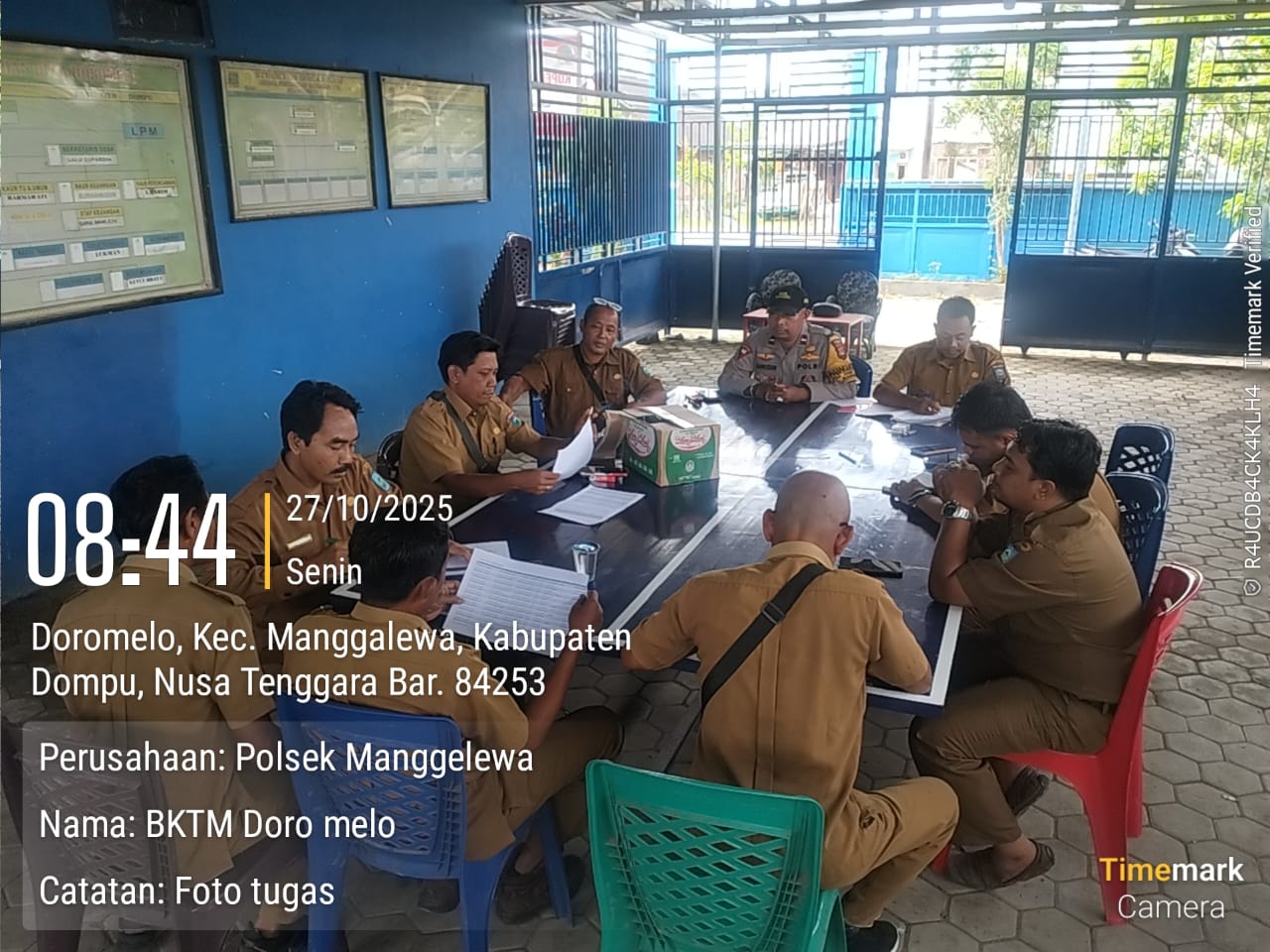 Dalam rangka mempererat kemitraan Polri dengan masyarakat dan mendukung transparansi program pemerintah, Bhabinkamtibmas Desa Doro Melo Polsek Manggelewa, AIPDA Jainudin, S.H., melaksanakan kegiatan sambang dan silaturahmi di Kantor Desa Doro Melo, Kecamatan Manggelewa, Kabupaten Dompu, pada Senin (27/10/2025) pukul 08.44 Wita.