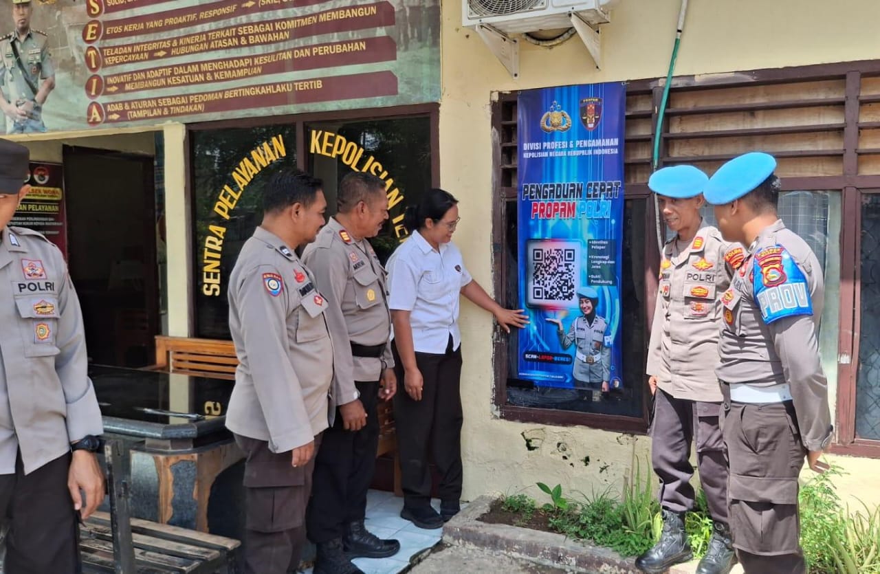 Tim Bidang Profesi dan Pengamanan ( Propam) Polda NTB melaksanakan kegiatan sosialisasi penggunaan QR Code Layanan Pengaduan (Yanduan) Propam Polri di Polsek jajaran Polres Bima.