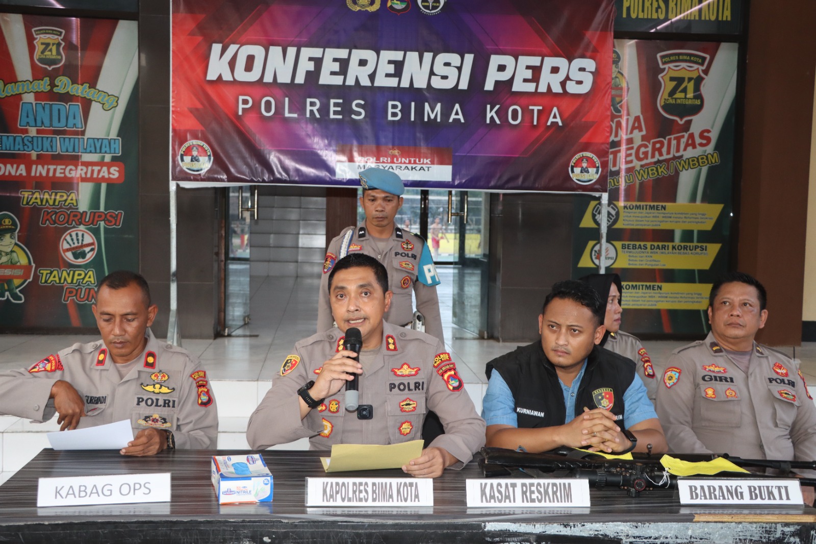“Terhadap saudara AD telah ditetapkan sebagai tersangka dan dilakukan penahanan di Rutan Polres Bima Kota karena melanggar UU Darurat RI Nomor 12 Tahun 1951 terkait kepemilikan senjata api tanpa izin,” tegas Kapolres.