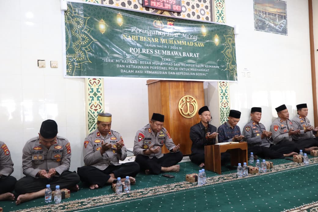Kapolres Sumbawa Barat Melalui Kasi Humas Polres Sumbawa Barat IPTU Ardiyatmaja menyampaikan bahwa peringatan Isra’ Mi’raj bukan sekadar kegiatan seremonial, namun menjadi momentum refleksi spiritual bagi seluruh personel Polri.