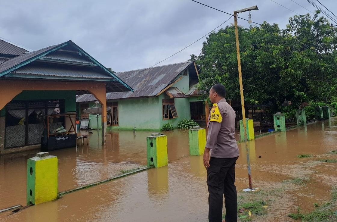 Untuk itu sejumlah personel Polsek Tambora Polres Bima Polda NTB dengan sigap membantu warga yang terdampak banjir.