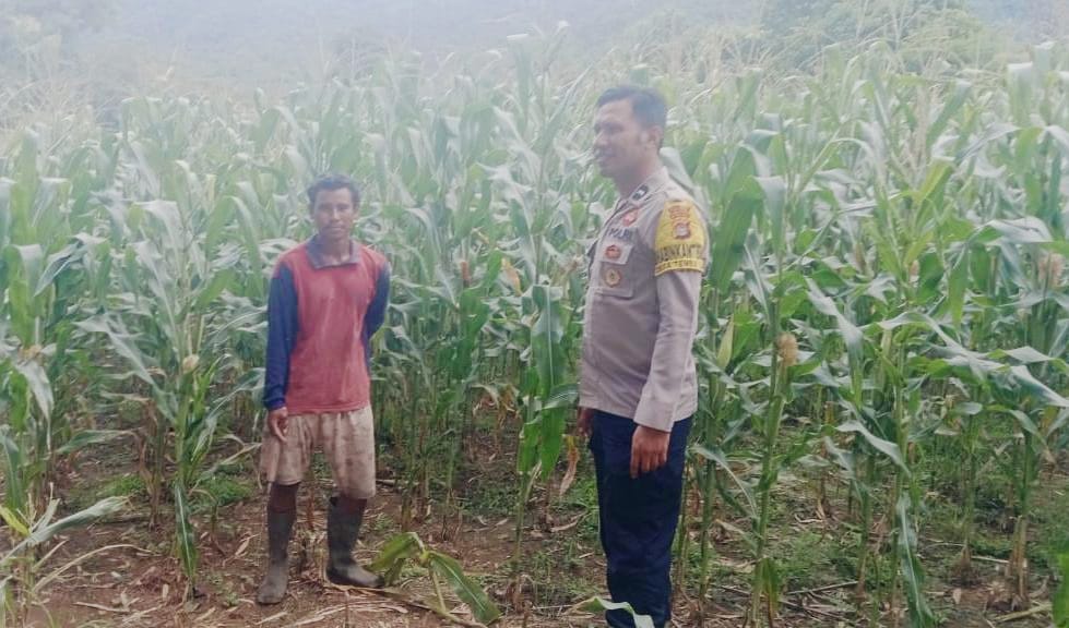 Dalam rangka mendukung Program Ketahanan Pangan Nasional menuju Indonesia Emas, Bhabinkamtibmas Desa Tembalae Polsek Pajo melaksanakan kegiatan pemantauan lahan jagung milik warga binaan di wilayah Kecamatan Pajo, Kabupaten Dompu.